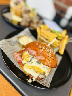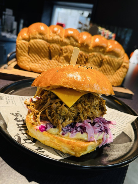 2 x 80 g hovězího smashe mletého masa z farmy Škodovi skvěle doplňuje jedinečnou chuť naší máslové briošky.